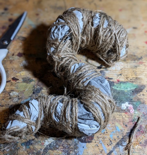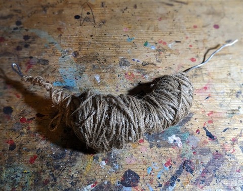 メルカリからご発注いただいた、走るアロサウルス単体の製作に着手。まずは芯を。アルミ線にわら半紙を巻き付けた上から麻縄を巻き付ける。上から軽量樹脂粘土を盛り付け。割り箸を切り出して、アルミ線で固定。脚にする。脚に麻縄を巻き付けつつ、胴体に固定。走るポーズと ...