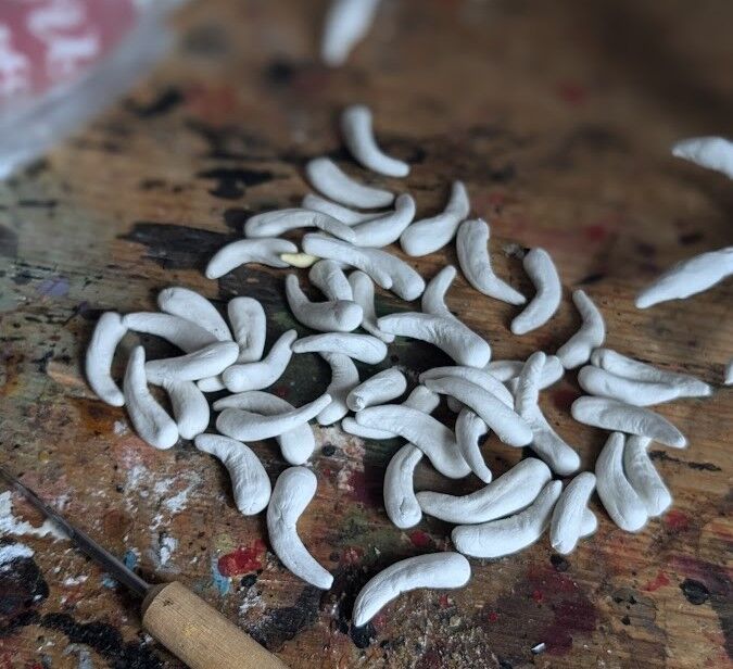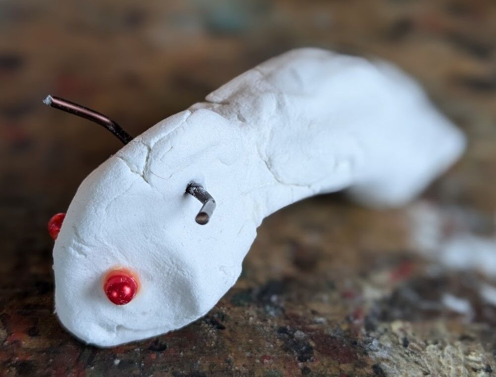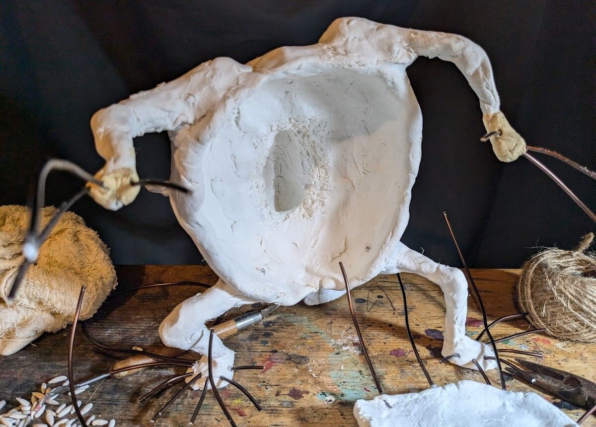 お椀のようですな。針金で手足をつける。まこと虫みたいだ。あ、まこと虫と言っても知らない世代にはかびるんるんと言えばいいのかな。