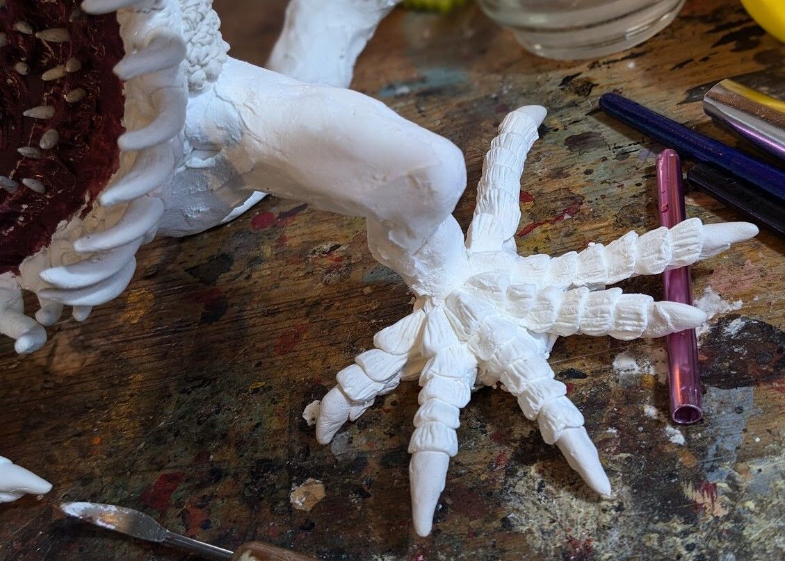 触手を装着する場所を開けて、表面造型にいそしむ。