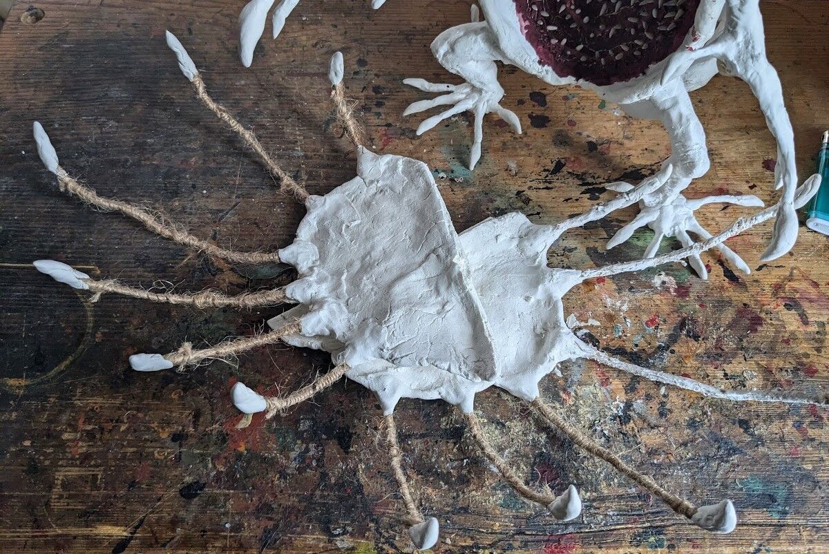 造型的にもこれは外せないが、単に背負っているだけでは触手に見えない。ので盛大に大きく作って広げる。ヒダを膜状に延長してみることにする。