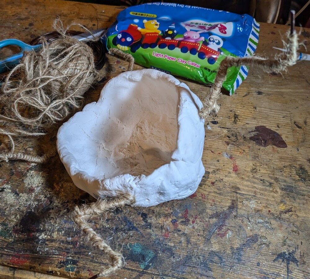 針金に麻紐を巻いて粘土の食いつきを確保。